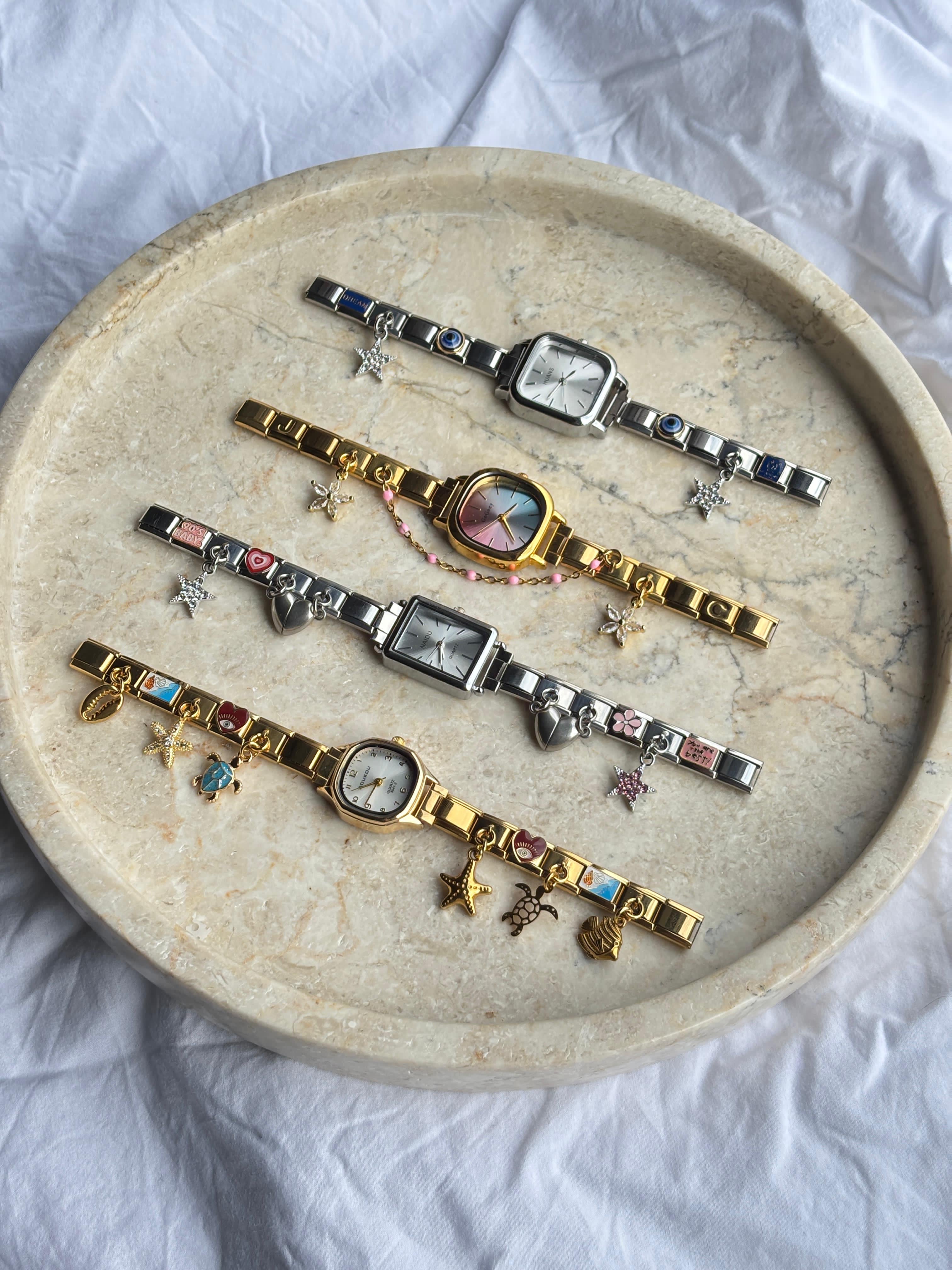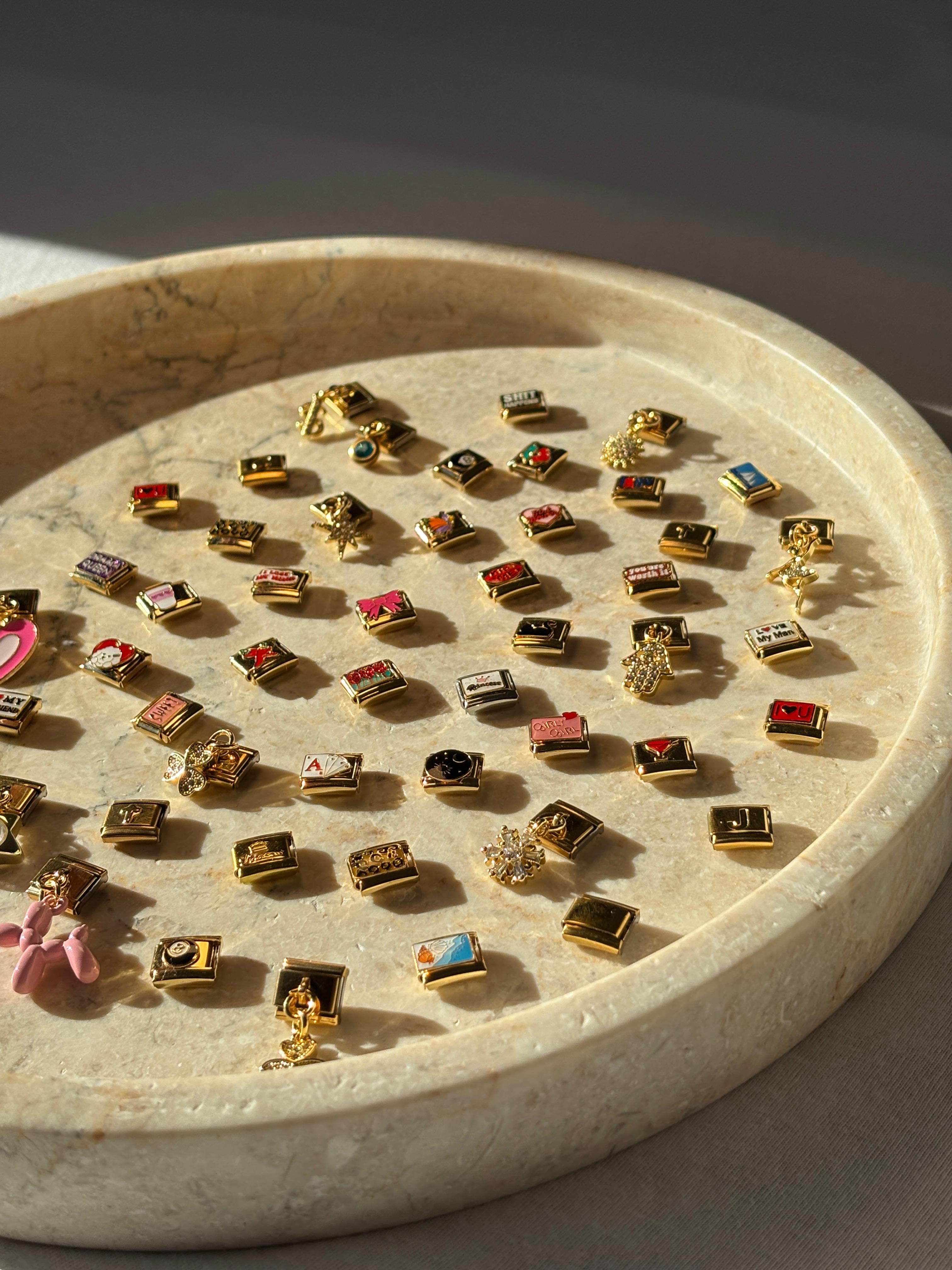 Du kannst entweder das leere Armband kaufen und es mit unseren Charms ergänzen oder dein eigenes Armband von Grund auf selbst gestalten.